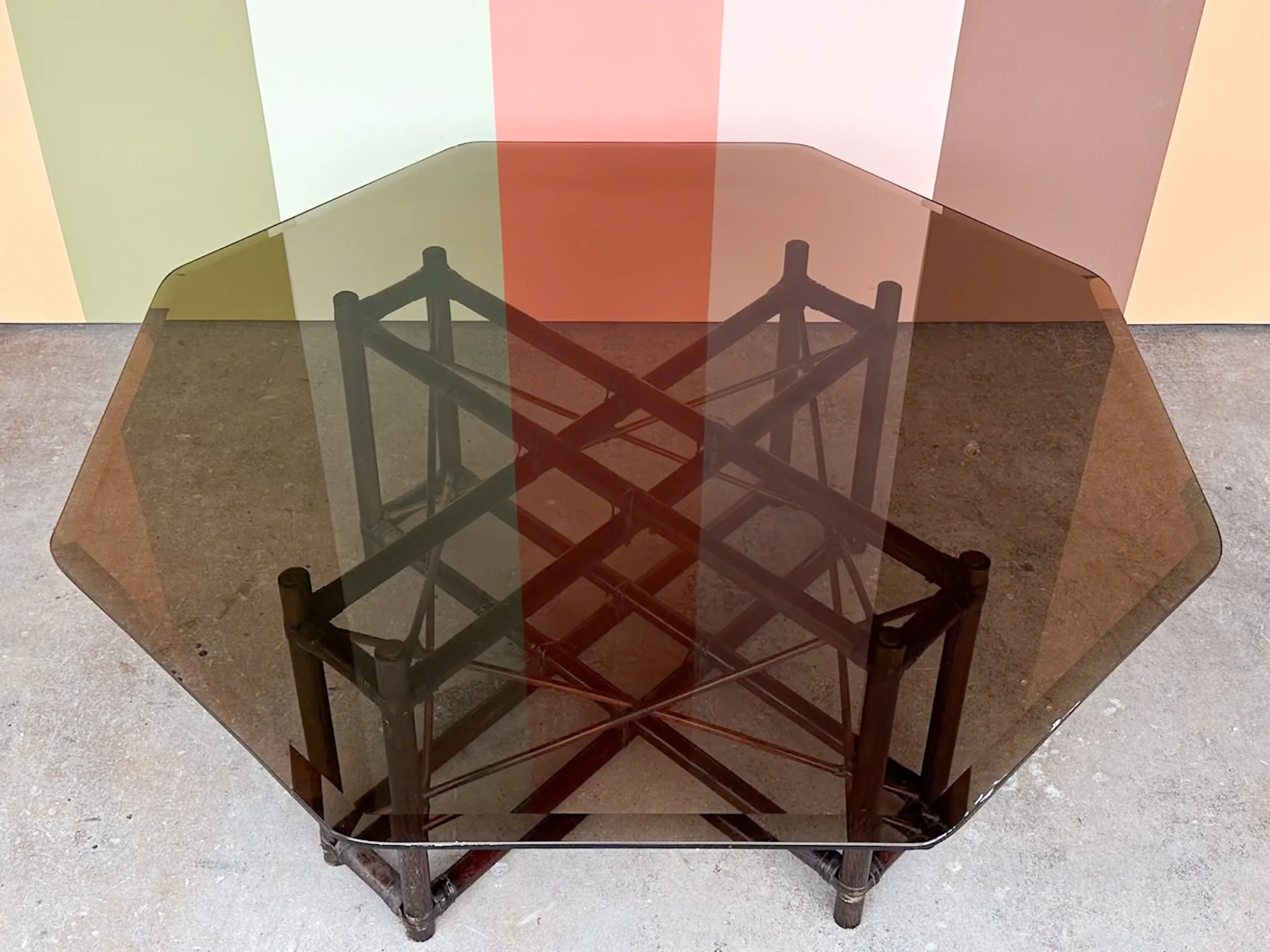 Handsome Rattan Coffee Table with Smoke Glass—