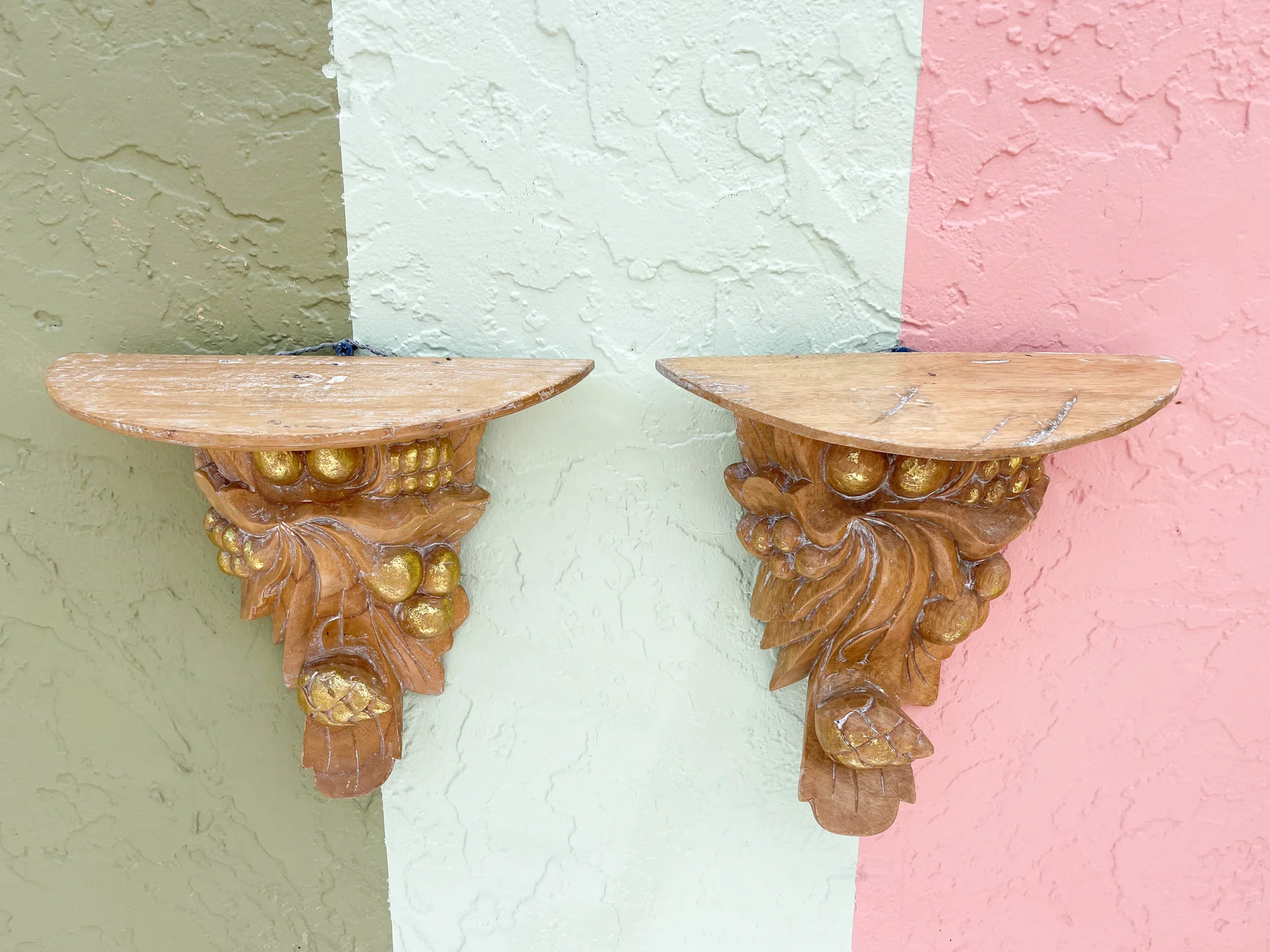 Pair of Wood Carved Seed and Berry Wall Shelves—