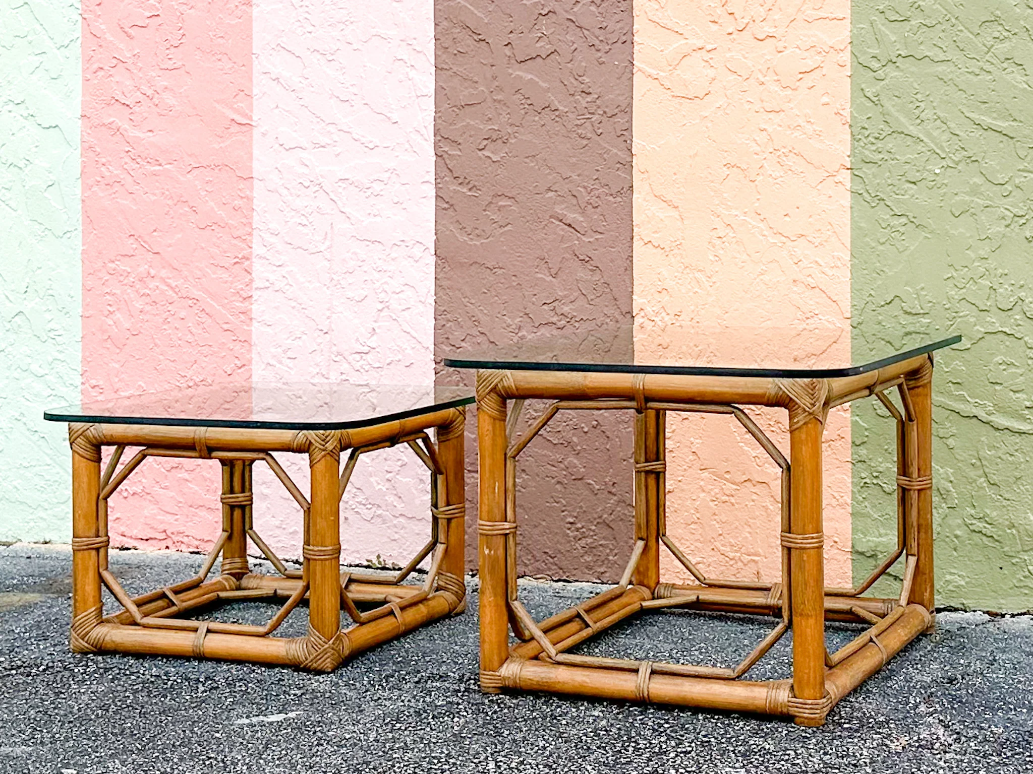 Pair of Fretwork Rattan Side Tables