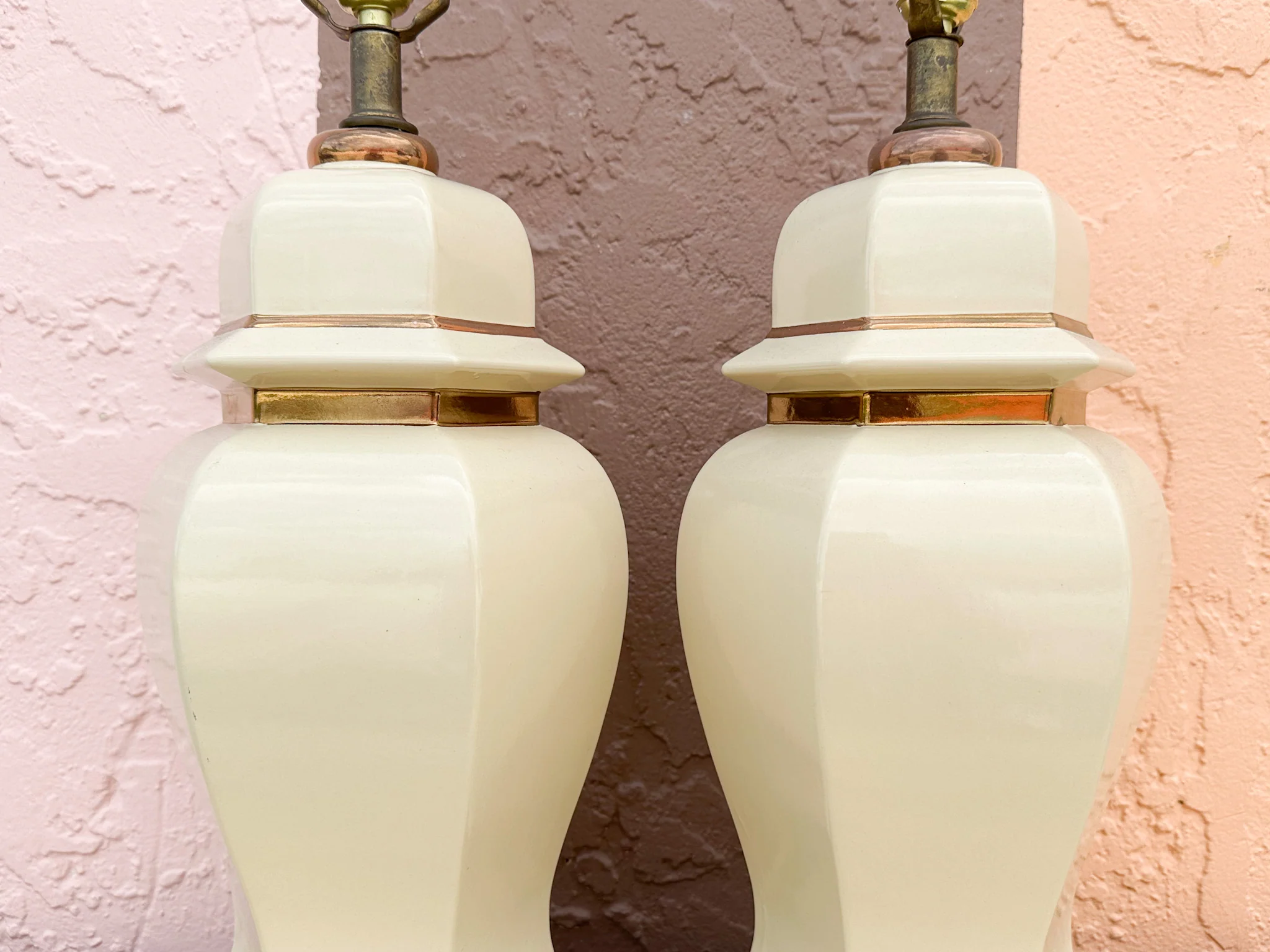 -70%Pair of Gold Trimmed Ginger Jar Lamps—