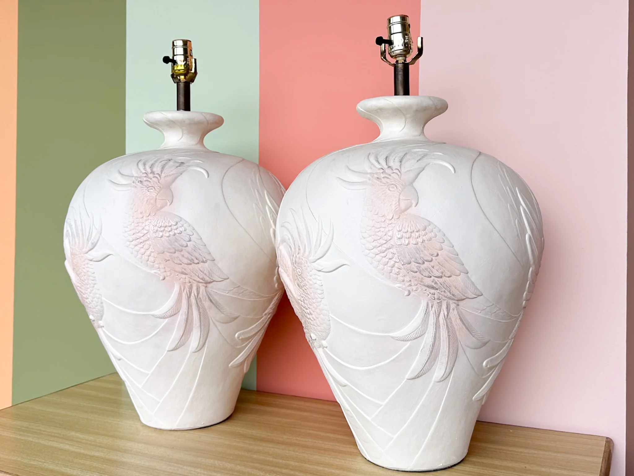 -70%Pair of Large Plaster Cockatoo Lamps—