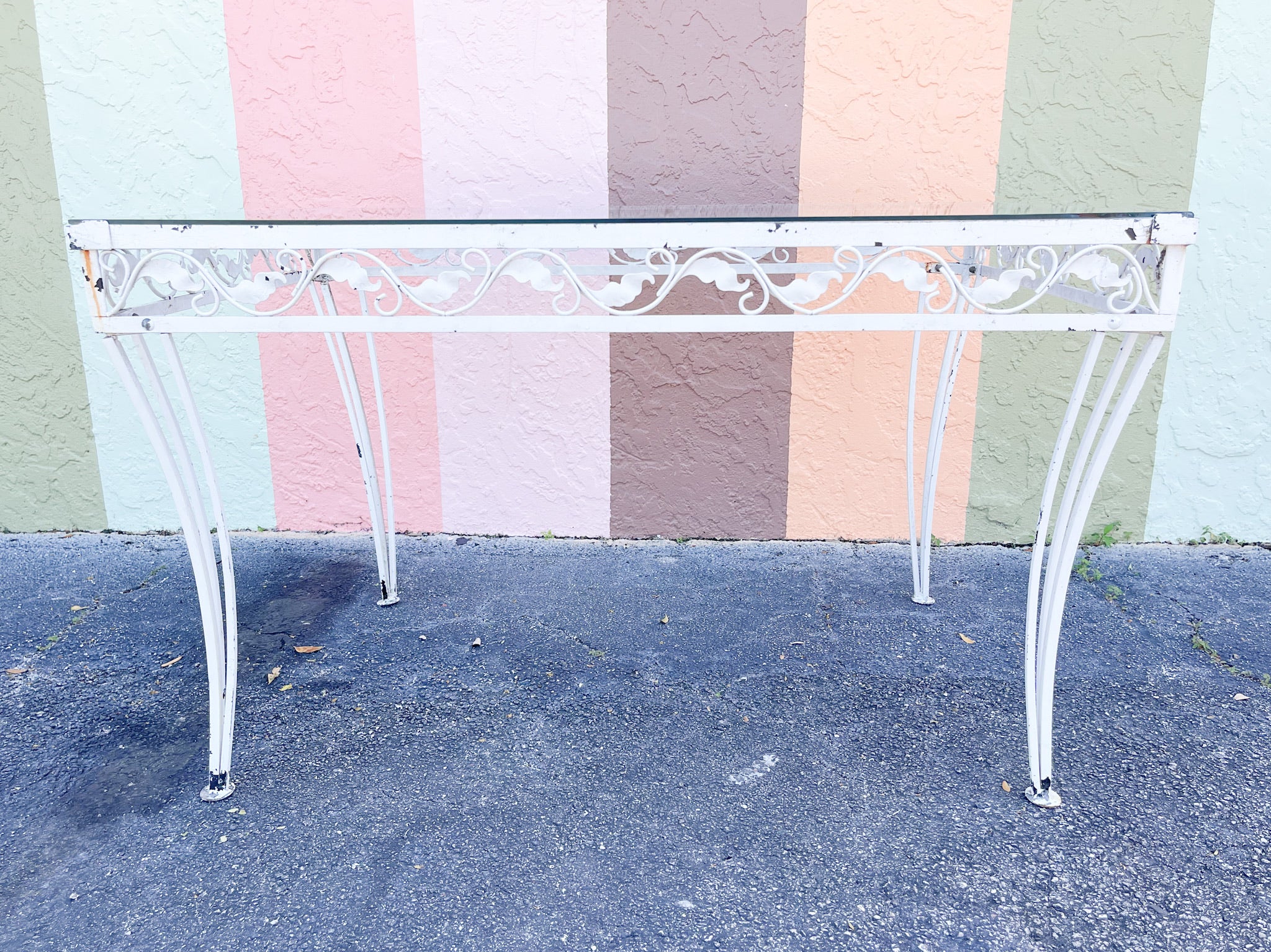All pieces are sold in nice as found vintage condition. There is no glass with this table. See photos.